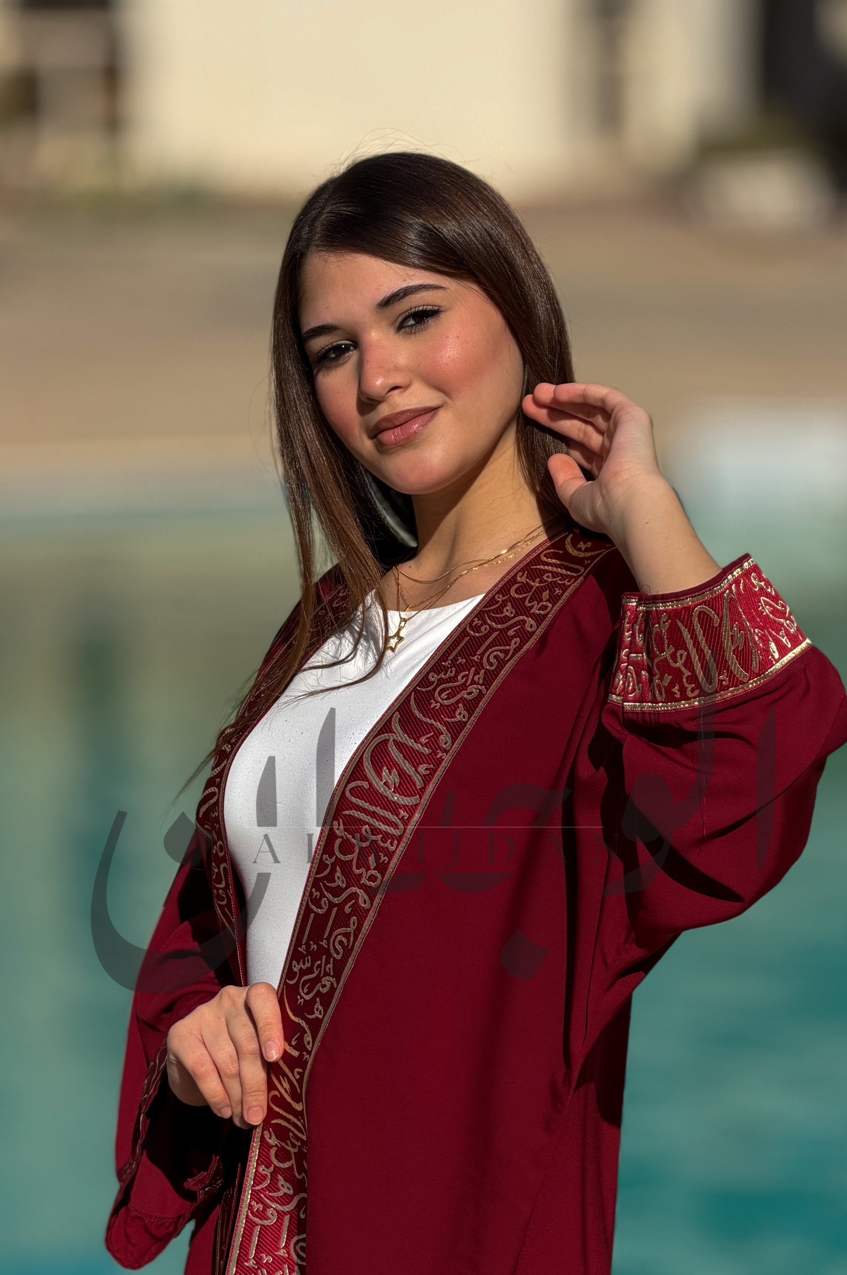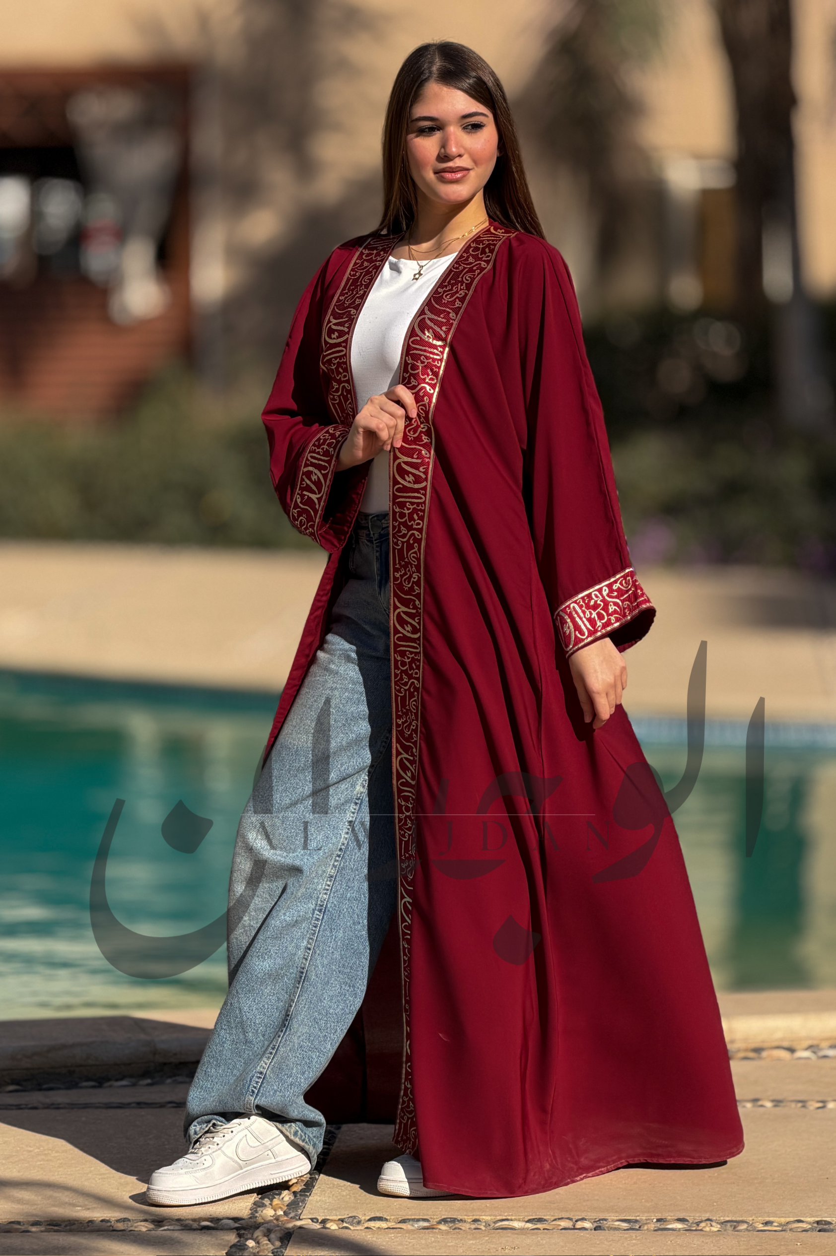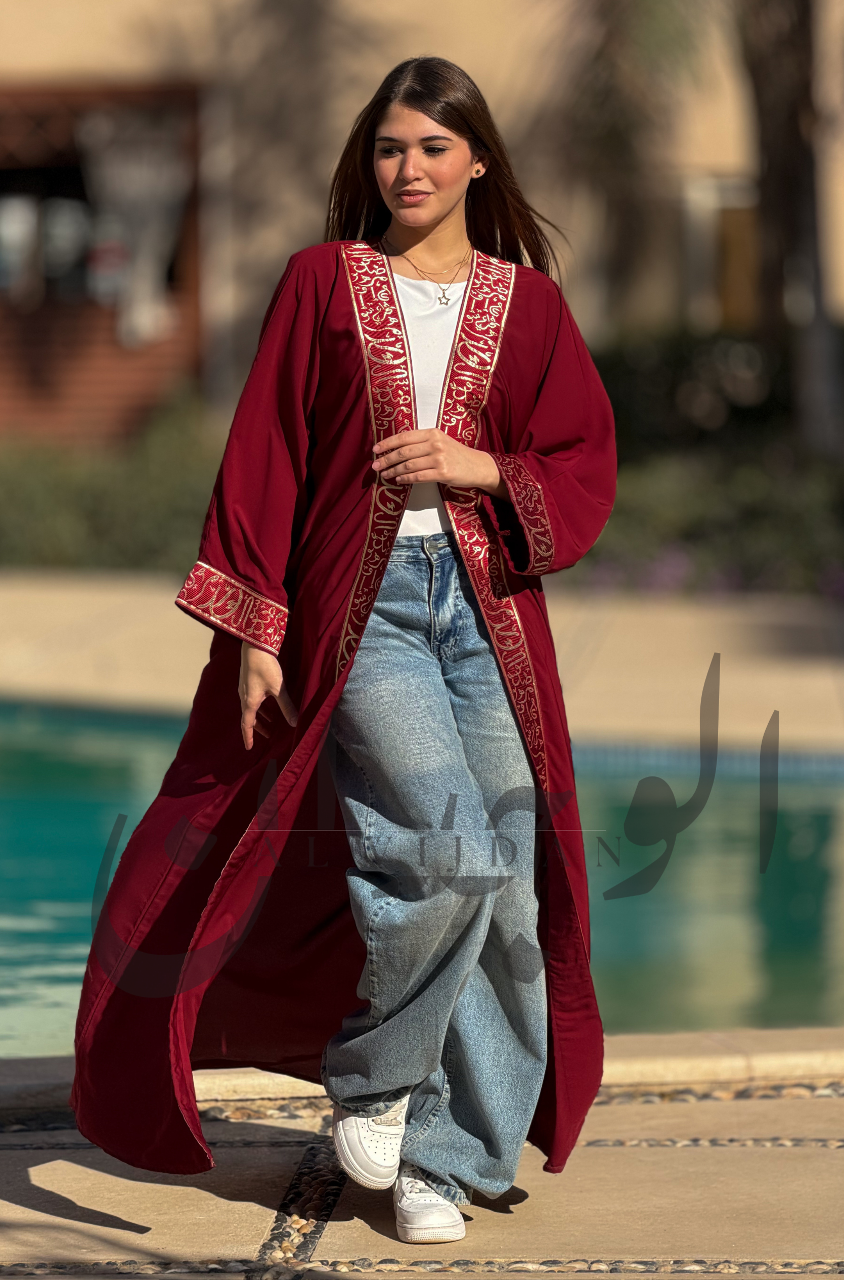 An authentic Arabic kaftan adorned with Arabic letter motifs— a design that reflects the richness and timeless elegance of Arab civilization